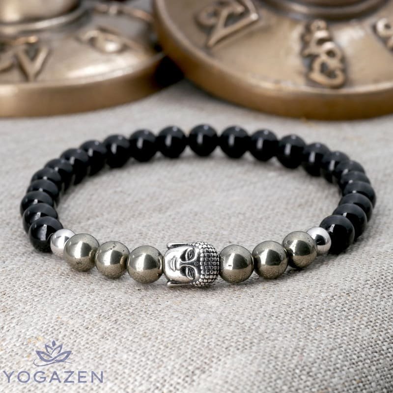Caractéristiques du bracelet bouddha en pyrite et tourmaline noire :