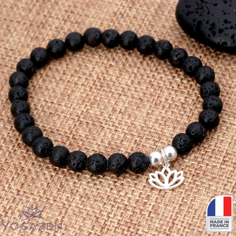 Caractéristiques du bracelet fleur de lotus en pierre de lave :