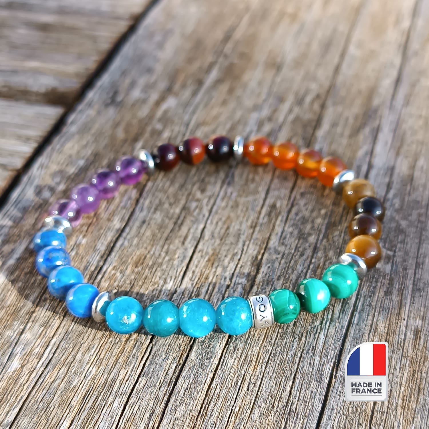 Le Bracelet Chakra en pierres naturelles restaure et décuple la circulation énergétique de votre corps. La puissance des pierres naturelles composant ce bijou restaure l’harmonisation spirituelle, émotionnelle, physique et mentale. Les vertus équilibrantes des pierres du bracelet transmettent bien-être et paix à votre corps et votre esprit.