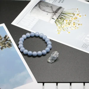 Ce bracelet est une fusion de la beauté tranquille et des propriétés spirituelles de l’angélite. En le portant, vous embrassez une énergie de calme et de communication céleste, vous rappelant constamment de chercher la paix intérieure et la sagesse dans votre quotidien. C’est un choix parfait pour celles et ceux qui recherchent un soutien dans leur chemin spirituel et émotionnel.