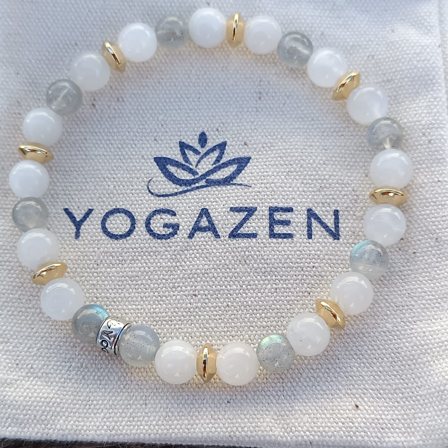 La pierre de lune apporte de la douceur, de la tendresse et de l’amour à son porteur. Elle représente l’équilibre puisqu’elle harmonise les émotions. Pierre de calme, la pierre de lune favorise un état de paix et de tranquillité. Elle est considérée comme une pierre spirituelle que le taoïsme définit comme le principe féminin, le principe d’intuition, de réceptivité et de créativité de la non-action. Un bracelet en pierre de lune favorise la réconciliation et équilibre les énergies sexuelles masculine et féminine. La pierre de lune agit sur les chakras couronne et de la gorge.