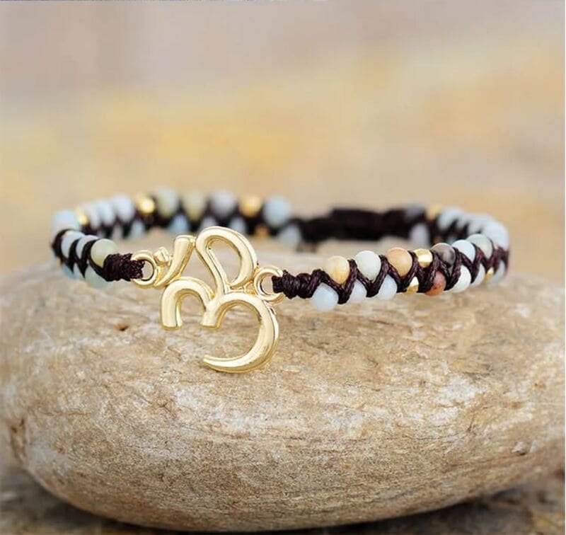 Augmentez votre capital bonheur et travaillez sur vos énergies spirituelles grâce à ce véritable bracelet Shamballa bouddhiste. Orné de perles d’Amazonite et du symbole de la lettre Om, cet élégant bijou a été entièrement réalisé à la main.