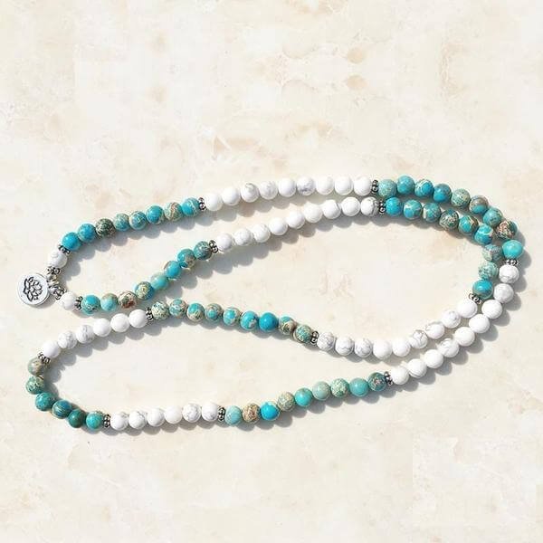 Caractéristiques du bracelet mala fleur de lotus howlite et jaspe océan :